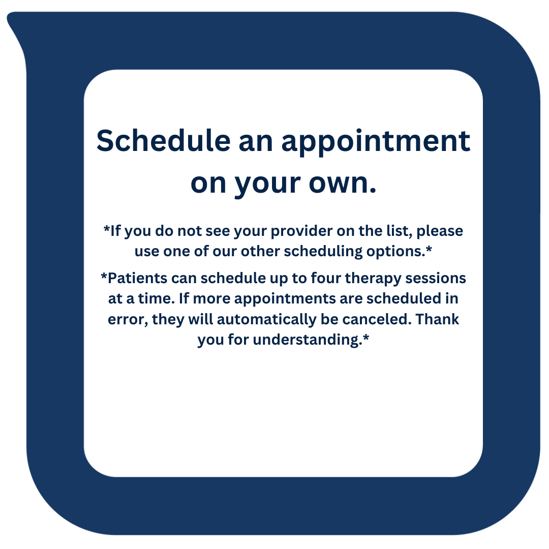 At this time, self-scheduling for dental appointments is not available. Instead, PLEASE either call our Registration & Scheduling Team or our Warsaw Location to schedule/change/cancel an appointment.